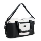 Uma bolsa esportiva de 18 litros sob medida para transportar uniformes, calçados e outros tipos de equipamentos esportivos. Feita com poliéster e malha, ela é resistente à água, protegendo tudo o que está dentro contra chuva e respingos de água, o que a transforma em uma companhia excelente para treinos e atividades práticas ao ar livre. A bolsa traz dois bolsos externos e outros dois na parte interna, aumentando as possibilidades de organizar roupas e equipamentos de maneira harmoniosa. Uma bolsa igualmente versátil na hora de carregá-la com o seu par de alças para mãos fixas que contam com uma liga com fechamento em velcro para juntar o par e facilitar o transporte, além de uma alça transversal para ombros removível e ajustável.