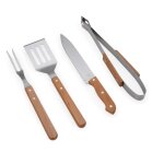 Prepare churrascos memoráveis e deliciosos com o nosso kit com quatro peças essenciais: espátula, garfo, pegador e faca de 7 polegadas, todas em aço inox com cabos de madeira, acomodadas em um estojo de nylon que facilita o armazenamento e transporte. Para maior exclusividade, acompanha uma plaquinha metálica personalizável com verso autoadesivo.